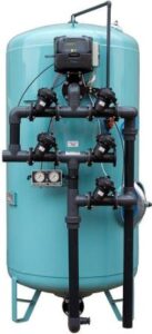 Песчаный фильтр используется для удаления мутности, растворенных веществ, железа и марганца. В процессе фильтрации постепенно происходит равномерное заполнение загрузки гидроокисью железа и марганца увеличиваются потери напора на фильтрующей загрузке, что является показателем необходимости регенерации фильтрующего материала.